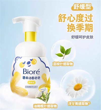 金色秋日带来的温暖视觉,也悄然跃上洗漱台——化作“碧柔洁面泡泡(舒缓型)” 那抹亮眼的黄色。萌趣的“泡泡熊”化身秋日使者,带来一场温和的洁面“治愈抱抱”。一按即出的绵密泡泡,如云朵般奶霜柔滑,减少了手与肌肤间的物理摩擦,避免对敏感肌肤造成额外负担。蕴含氨基酸表活成分,轻松洗去污垢与多余油脂,同时呵护肌肤屏障。特别添加的油橄榄叶、洋甘菊等提取物,为洁面过程注入“舒缓能量”,帮助安抚换季期间易受刺激的肌肤。