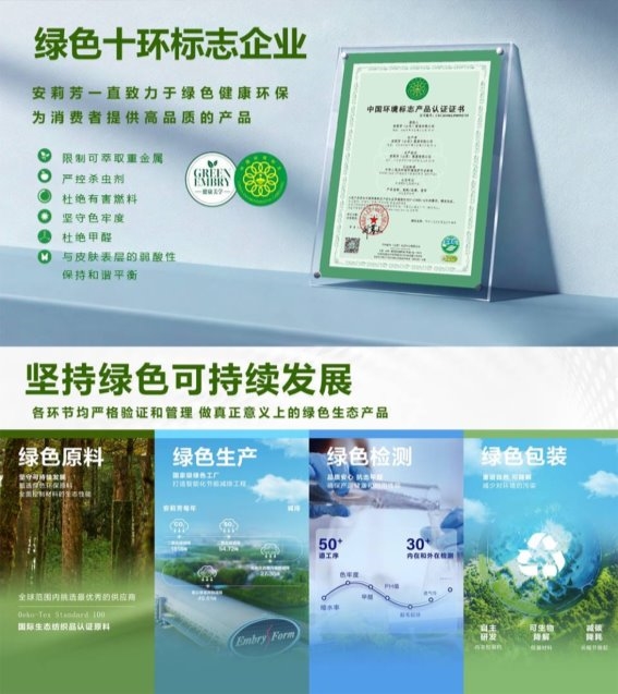 对此,安莉芳提出:“安莉芳作为拥有50多年历史的中国首家上市品牌内衣企业,始终将‘安全’定义贯穿产品全链路。我们获得的‘中国环境标志产品认证’(十环标志),不仅是对色彩的把控,更是对甲醛、重金属、杀虫剂等毒性物质的严格杜绝。”