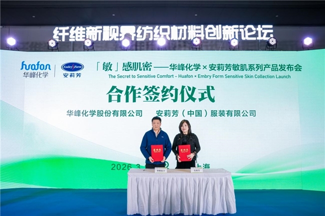 【简讯】 2026年3月11日下午,在国家会展中心(上海)举行的《「敏」感肌密》主题发布会上,中国内衣行业领军品牌安莉芳与全球氨纶巨头华峰化学强强联手,正式推出了专为敏感肌人群打造的居家服、内衣等全系列新品。此次发布不仅是一次产品的迭代升级,更是两家民族企业积极响应国家关于“健康中国”与“绿色发展”号召,以科技创新推动产业绿色转型的生动实践,为即将到来的国家“十五五”规划中关于高品质生活与生态文明建设的宏伟蓝图增添了浓墨重彩的一笔。