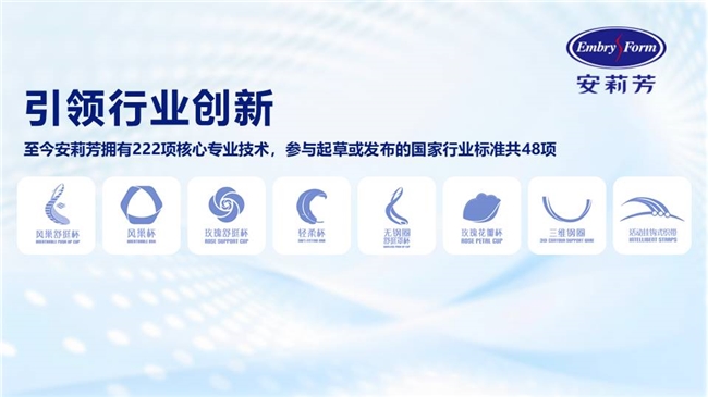 安莉芳秉承以人为本的“舒适美学”理念,为中国女性提供绿色健康高品质的内衣。早在2006年安莉芳就已成为中国大陆第一家上市的内衣品牌。50年来,安莉芳不断研究创新,迄今为止,拥有222项核心专业技术,参与起草国家行业标准共48项,推动着内衣行业的进步与发展。品牌核心专利“风巣杯”、“风巢舒挺杯”“三维钢圈”等,每一项技术的创新,都是对「舒适与专业」的极致追求。