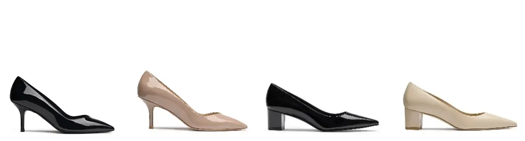 STUART 50 BLOCK PUMP牛皮革黑漆皮、沙丘米抛光牛皮高跟鞋RMB 4100