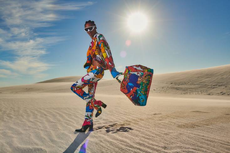 此外,迪士尼与BALMAIN的此次合作聚焦于新一代的年轻非洲艺术家。两家企业都以长期支持新兴艺术家而倍感自豪,限定系列在此基础上进一步发展,向全球观众展现了一批新鲜且富有吸引力的视觉作品。南非画家Nika Mtwana为该系列创作了引人入胜的非洲未来主义肖像画,巧妙地通过BALMAIN墨镜上的镜头反射,将《狮子王》中的场景融入了他的作品中。Rousteing将Mtwana的设计化作限定系列T恤、上衣及连衣裙上的多彩印花。喀麦隆画家Enfant Precoce则更专注于辛巴,他的作品展示了《狮子王》主角在充满各种非洲野生动物的梦幻般景观中穿行。Precoce的设计以黑白与多彩变化的方式覆盖了手袋、外套、西装、T恤与礼服。南非画家Cassius Khumalo又以鲜明的蓝色、黑色与金箔创作了一幅引人注目的狮后娜拉肖像。Khumalo所创作的震慑人心的形象被用于一系列手袋、T恤与连帽衫之上。