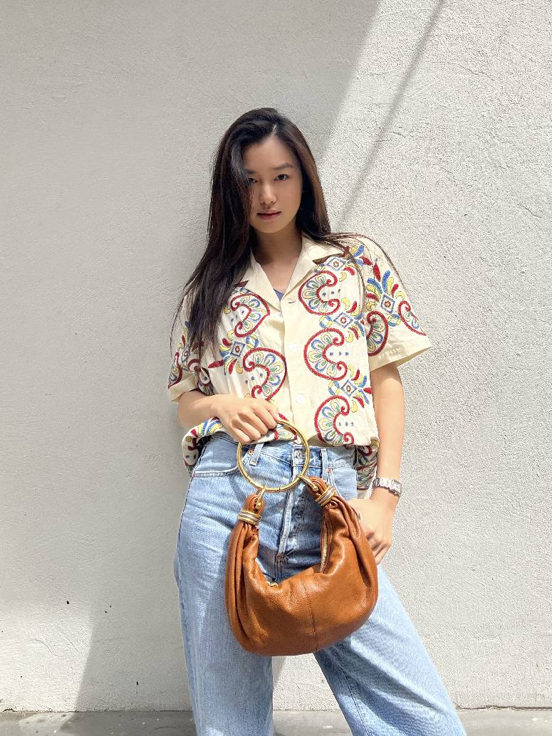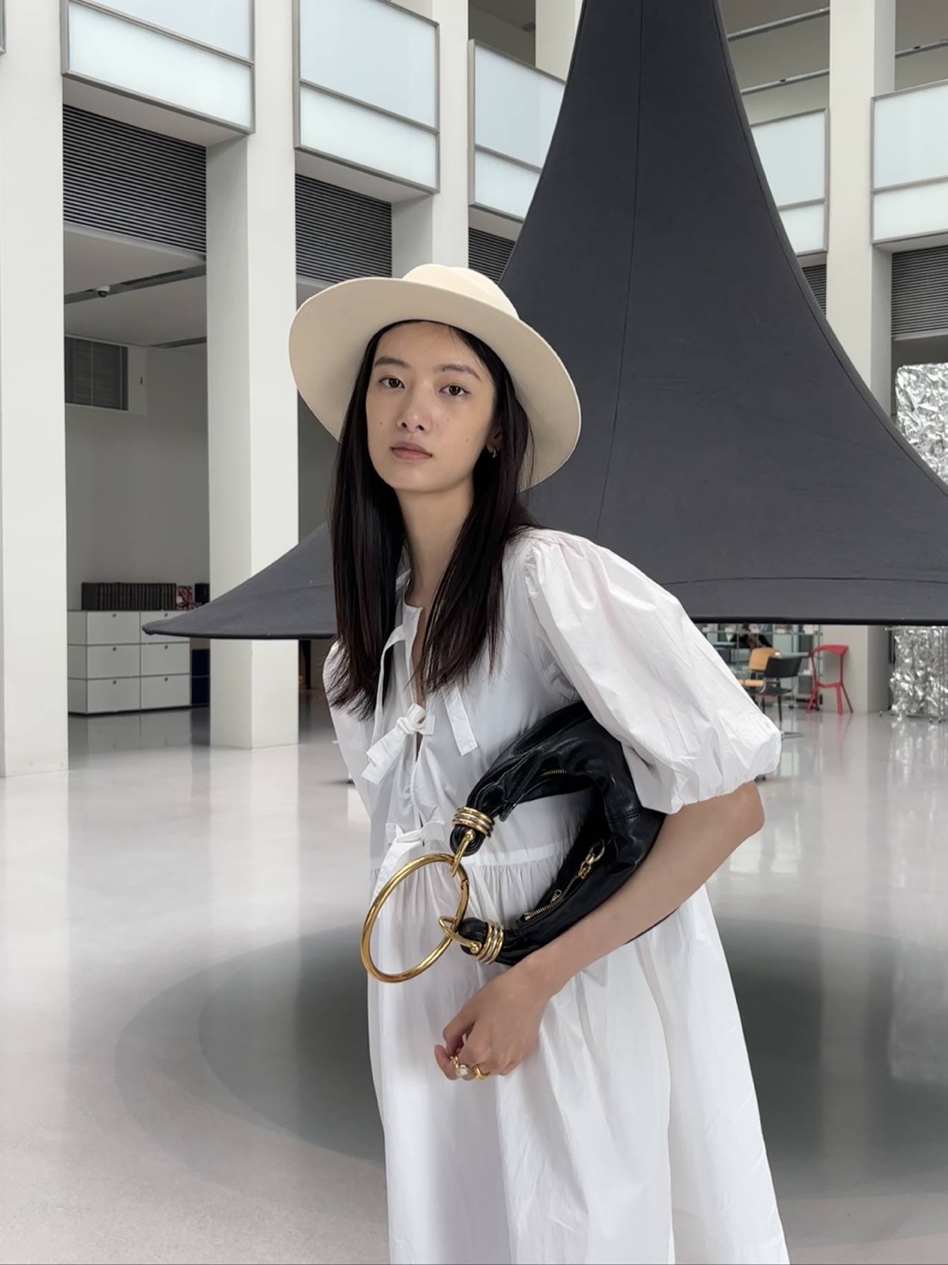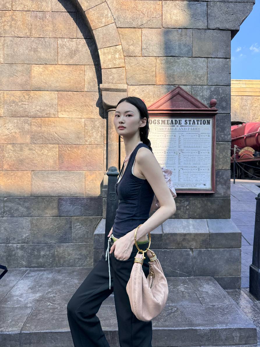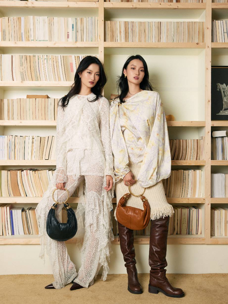 贺聪、项偞婧 Cici Xiang、赵佳丽、陈瑜、关茈文 & 关茈匀、LINDA李静携Chloé 2024秋季系列Bracelet 手环包拍摄私服。手环包柔软的包身由光亮粒面小牛皮制成,与其双色金属配件的光泽度形成鲜明对比,设计上秉承Chloé一贯的轻松、飘逸和随意洒脱的风格。