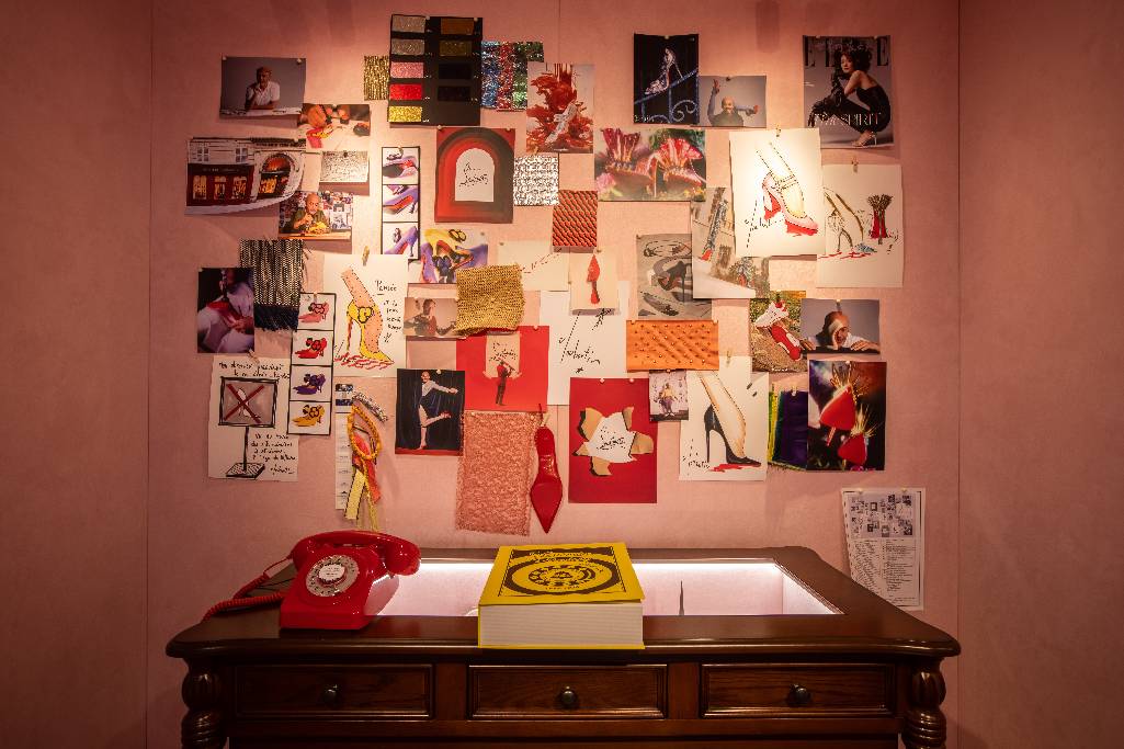 体验空间中再现了品牌创始人兼设计师Christian Louboutin先生位于巴黎的工作室的局部场景,引领参观者重温标志性红底鞋诞生的里程时刻。现场还原的办公桌上不仅展示着历史上的第一双红底鞋,工作室场景内亦通过具有历史意义的物品陈设与展示于墙面的部分鞋履草图,共同讲述了Christian Louboutin先生设计生涯的缘起经历与创作以来的一个个独特故事。其中,藉由放置于办公桌上的复古红色电话拨打专属号码,亦可聆听Christian Louboutin先生和品牌代言人杨幂的亲切留言。