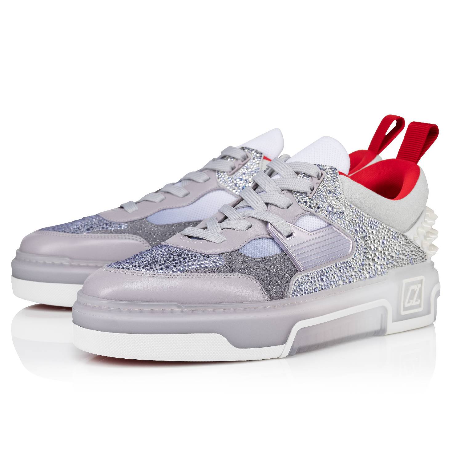 ASTROLOUBI运动鞋灵感来自于90年代前卫的街头风格,完美融合标志性篮球鞋与滑板鞋的美学元素。饰边细节搭配极具几何感的轮廓线条型,经典铆钉与CL风格标识,点缀装饰鞋履。