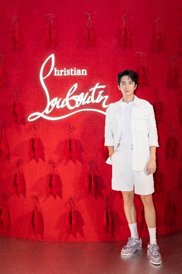 张新成穿着Christian Louboutin Astroloubi运动鞋亮相限时体验空间
