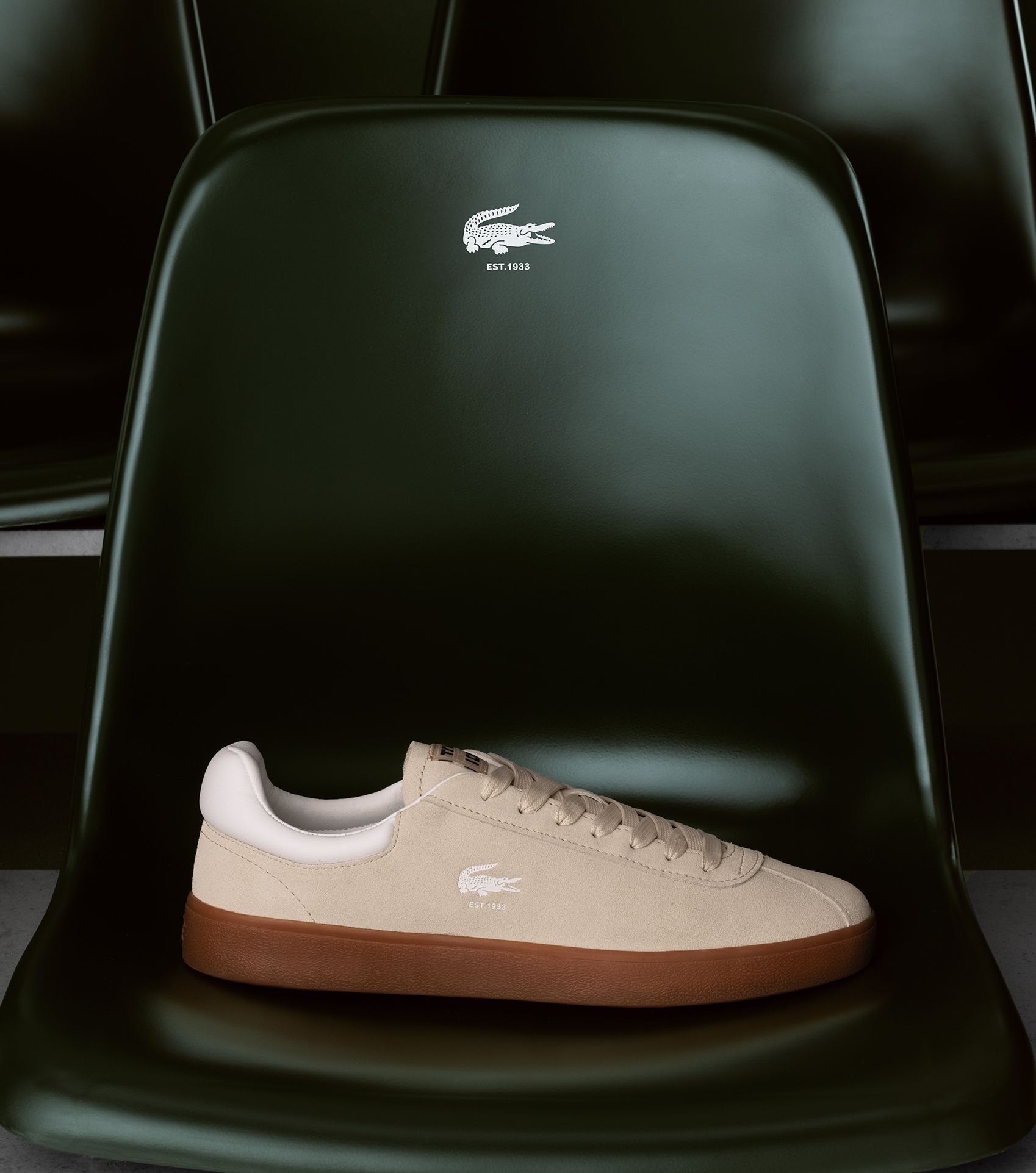BASESHOT 系列从 90 年代的 Portofino 鞋款汲取灵感,复刻经典球场风格,并融入现代元素,焕发出时光交错的独特魅力。此次推出的秋冬新款进一步优化材质与颜色。鞋面采用丝光反毛牛皮,搭配磨砂纹理的复古生胶大底,丰富的撞色拼块与品牌历史标志“ EST.1933 ”压印突显时尚感,众多明亮或复古色调的选择,满足不同场合与需求。每一双 BASESHOT 都承载着浓厚的品牌历史底蕴与现 代时尚精神,抒写 LACOSTE 对经典的焕新诠释。
