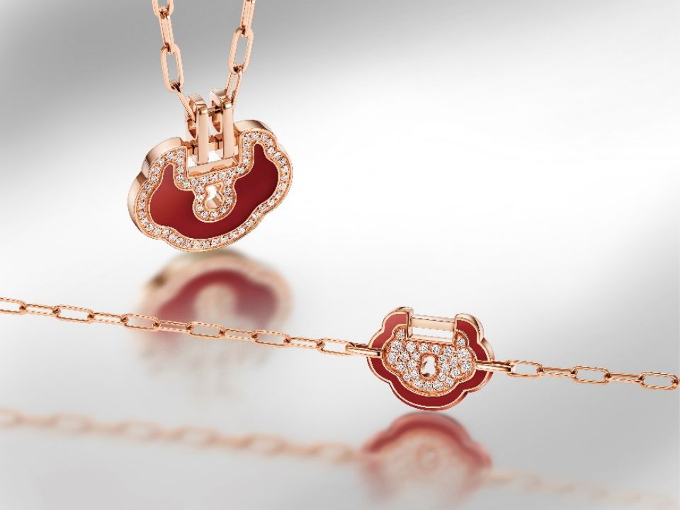 上:Qeelin Yu Yi系列18K玫瑰金钻石及红玛瑙项链