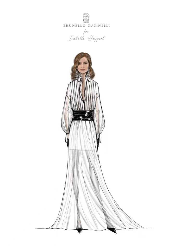 图2:Brunello Cucinelli为法国演员Isabelle Huppert特别定制的礼服设计手稿