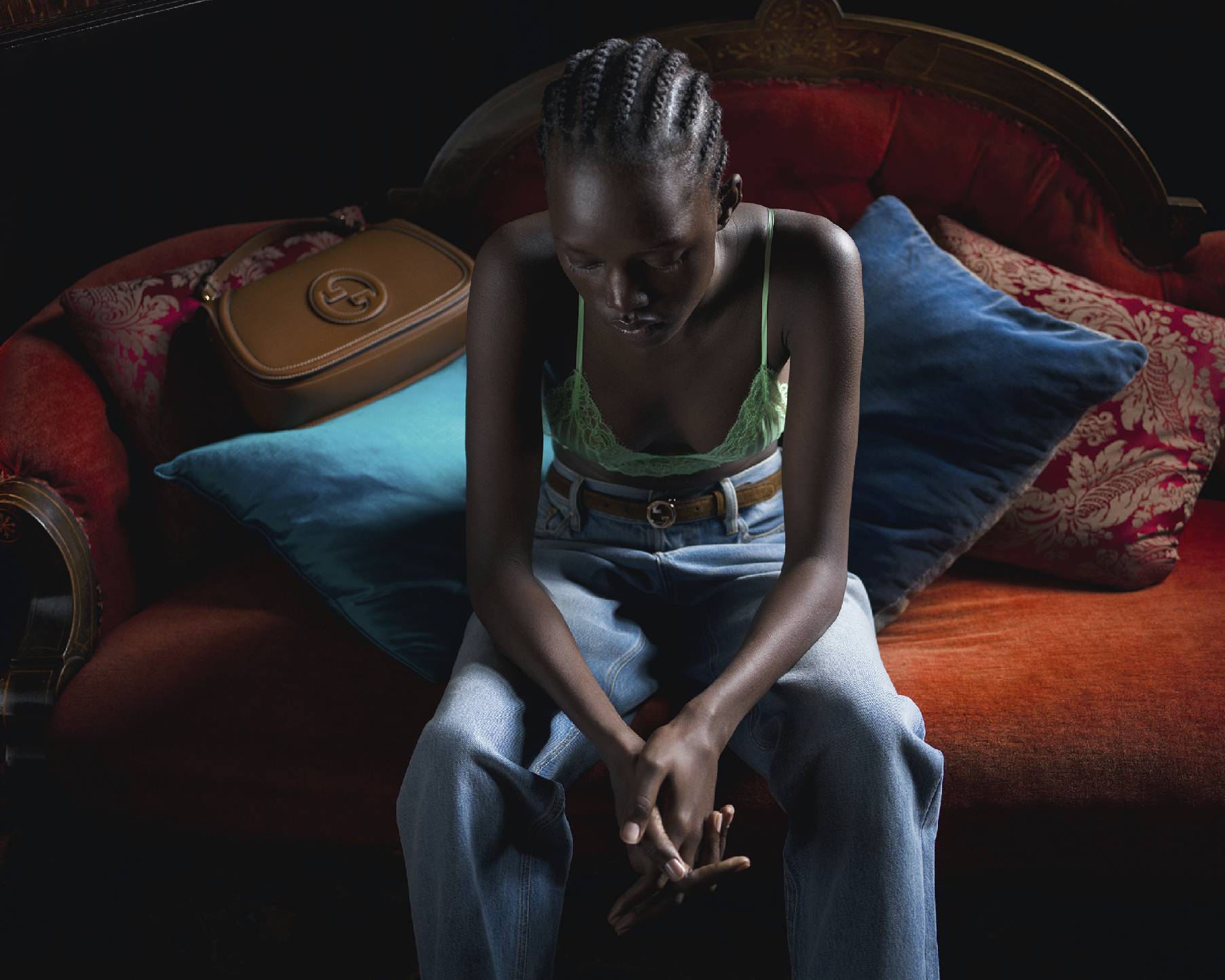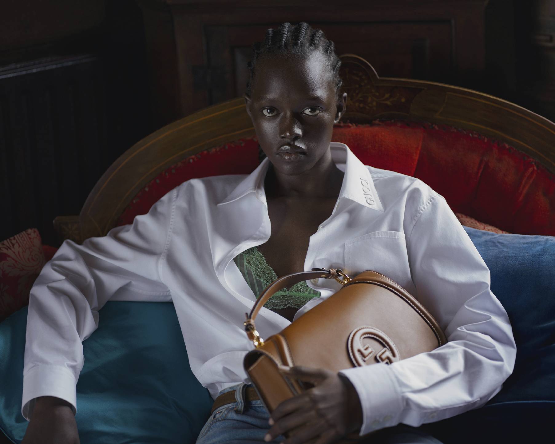 本次广告形象大片的核心是Gucci Blondie手袋,这不仅是一款配饰,更是古驰经典元素的当代演绎。早在1970年代初,甫一推出的Gucci Blondie手袋便以其标志性的圆形互扣式双G标识引领风格,由皮革或珐琅制成的经典标识呼应着那个具有反叛精神的时代。如今,其符合当代美学的简洁且富有空间感的廓形,再次开启与当代美学的对话。