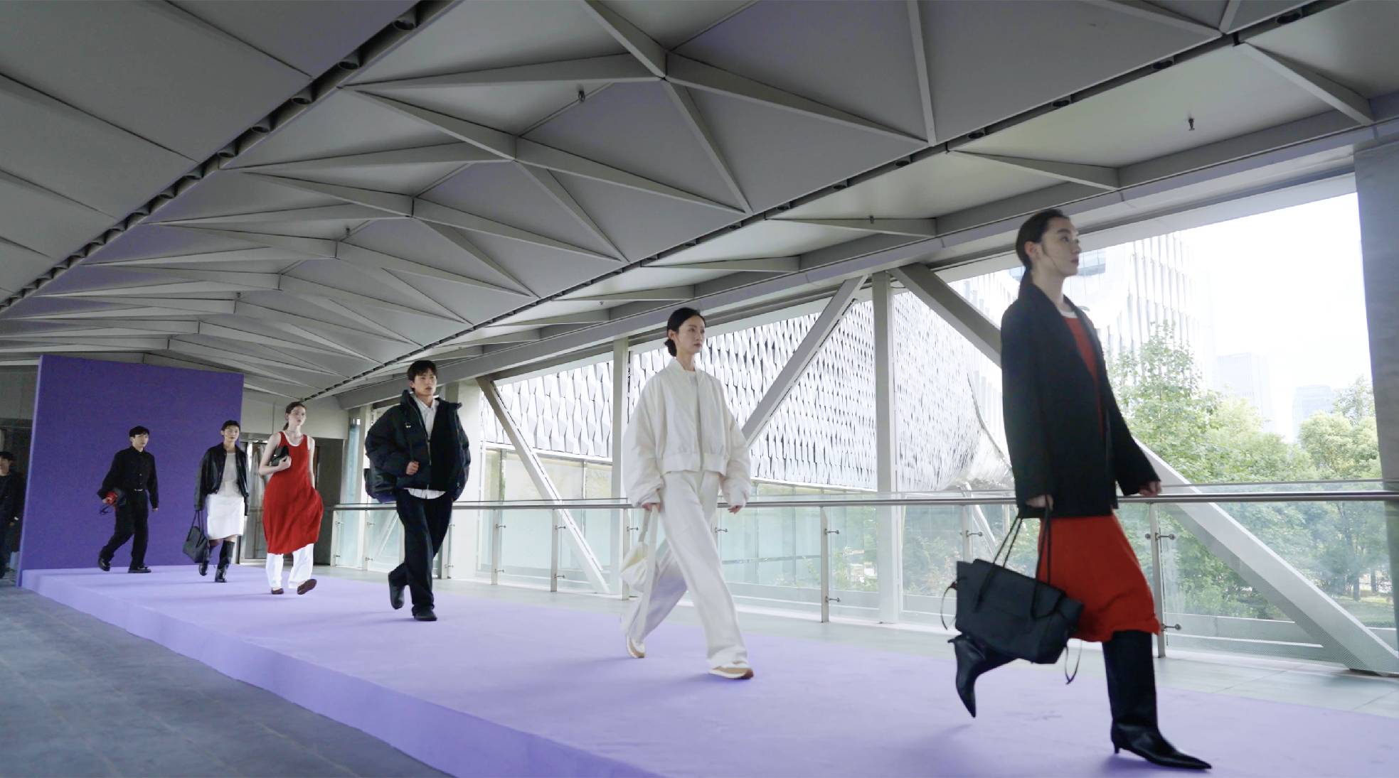 让单调的城市角落焕发时尚活力,给了每一位时尚追梦人略显身手的机会。当身着indicia标记2024秋冬系列模特儿们踏上紫色秀道,孤独的天桥被时尚与浪漫晕染,时装的生命力在流动,在召唤你我。