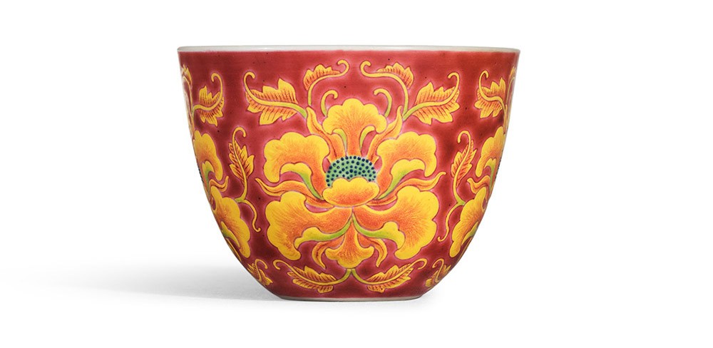 御制珐琅彩杯,器形尚古典雅,装饰瑰丽悦目,配合艺匠精湛技巧,美轮美奂,堪称清瓷绝品。景德镇精心制坯,运抵京后造办处珐琅作画师工笔妙写,牡丹盛绽不逊姚黄,紫禁城内复烧,成就丽色雅泽,让人爱不释手。有别于常见的彩料双方框款,底刻「康熙御制」宋体款,应属早期实验性作品,未受规范覊绊。入藏小听颿楼前,此杯曾属望族名媛芭芭拉.赫顿(1912-79 年)珍蓄。她对清瓷情有独钟,旧藏珍品至今仍为人向慕。