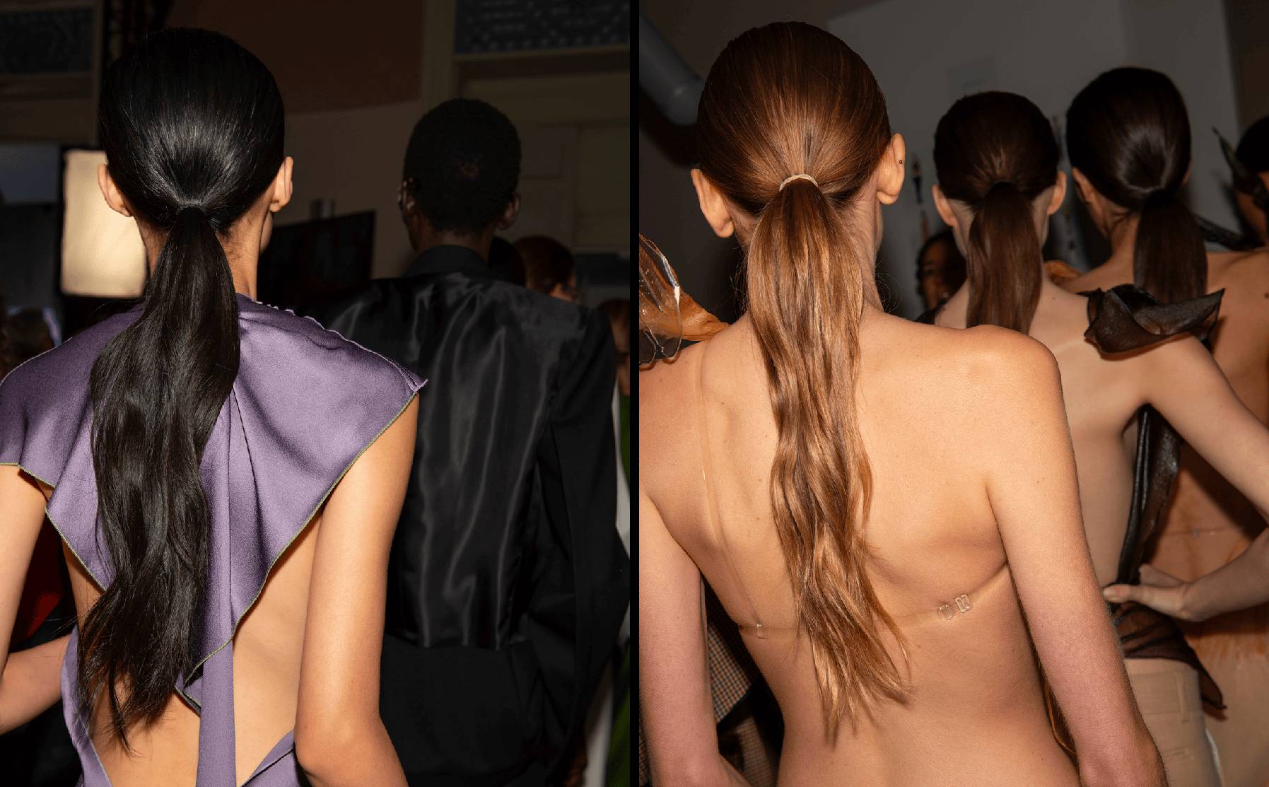 本季秀场后台将“缎光”作为造型的关键词,着重于突显健康而强韧的秀发质感。ghd以自身专业而深厚的美发造型科技底蕴强势助力秀场造型,在融合革新科技与奢华美学的 chronos® 钻光版高精智能造型夹和其他ghd专业美发造型工具的加持下,联合发型师Anthony Turner共同创作了一款兼具简约格调与纹理质感的低马尾发型,诠释本季Victoria Beckham 2025春夏系列轻盈干练的创作主题。