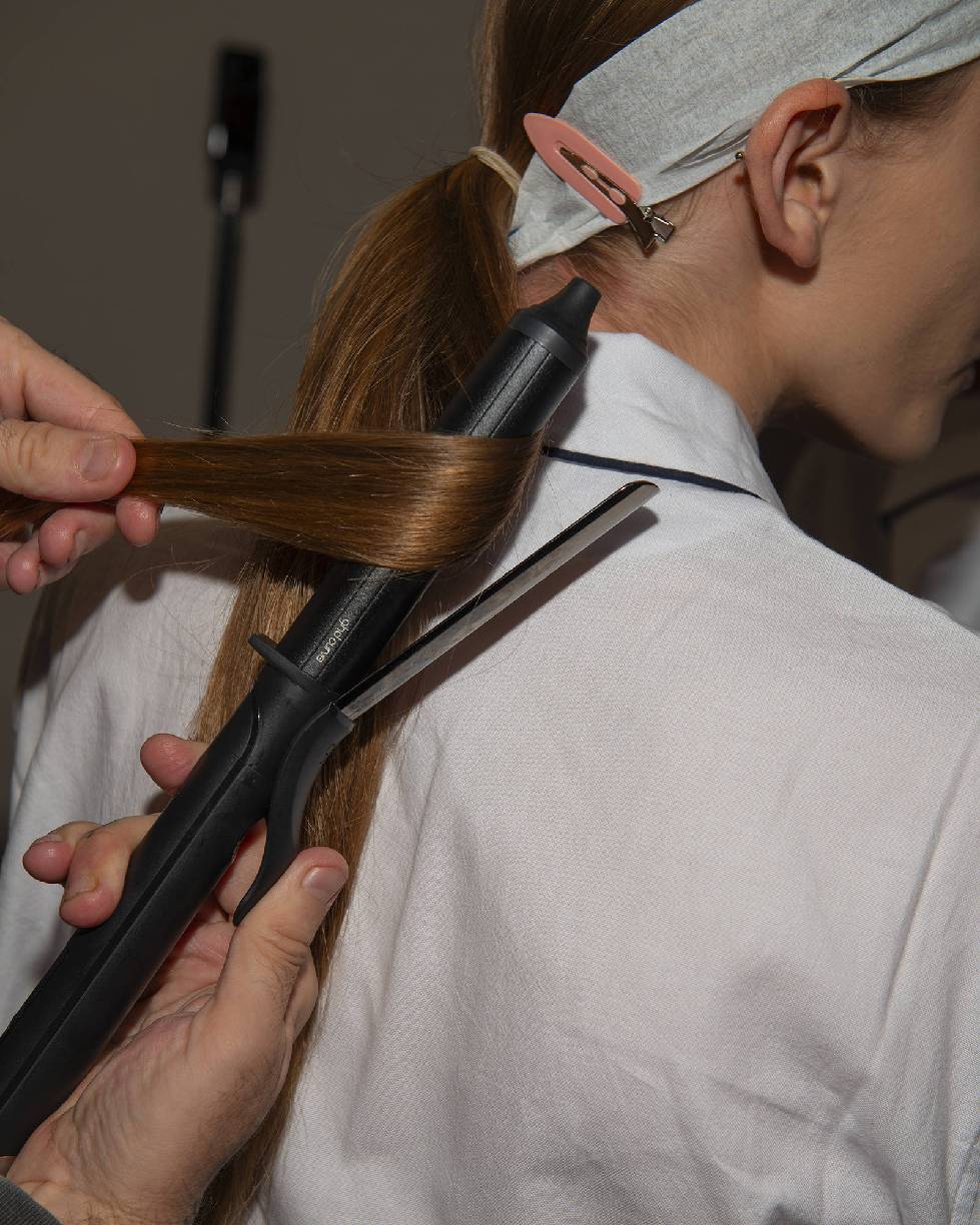 Victoria Beckham女士表示:“本季我们追求的是兼具轻盈面料与高智感设计的时装风格。我们选择了低马尾造型,使用ghd chronos® 钻光版高精智能造型夹,打造出了令人赞叹的缎光秀发效果。这一季春夏系列松弛自然的造型风格是我的心头所爱,而ghd 一直是我打造美发造型的挚爱首选。”