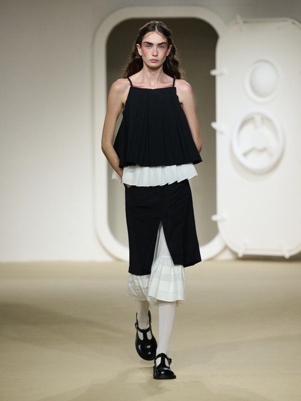 春夏全新系列的设计,捕捉了这一刻的纯粹与美好,黑白色调贯穿始终,白色象征着航海的纯粹与自由,黑色则融⼊海洋的深邃与沉静,与精致的蕾丝和珠片花面料处理⼯艺结合,营造出⼀种静谧的奢华感为整体造型增添了一丝柔美与神秘,同时亦不失浪漫的韵味。打造电影般慵懒奢华的场景。