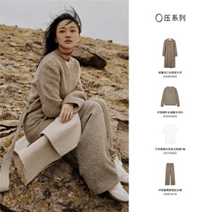 本季0压系列专注松弛表达,通过舒适柔和的剪裁、舒缓简洁的用色和高品质的材质,将温暖和关怀毫无保留地献予冬日。至臻至暖的多样化衣材,如羊毛羊绒、牦牛绒和羊毛混纺温润现身,交织出自然和身体的亲近感知,带来深度的温暖倚靠和天然抚慰,使人淡然笃定,只身入冬亦无惧寒冷。