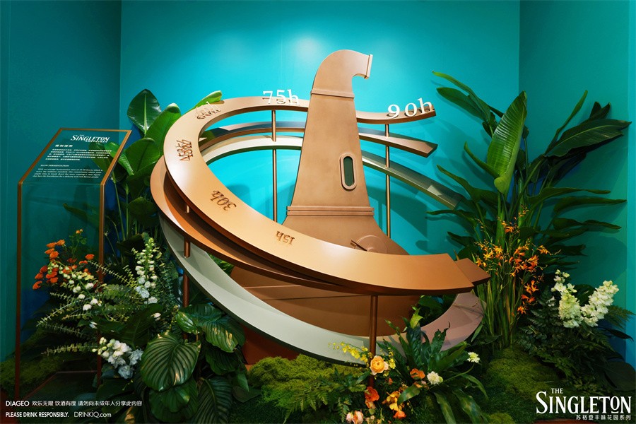 紧接着,品牌陈列区还原了苏格登使用的铜制壶型蒸馏器,以视觉化的“时间”维度所缠绕,向嘉宾们呈现苏格登品牌的“慢酵酿”工艺,苏格登坚持而由此带来细腻和馥郁的酒液风味。