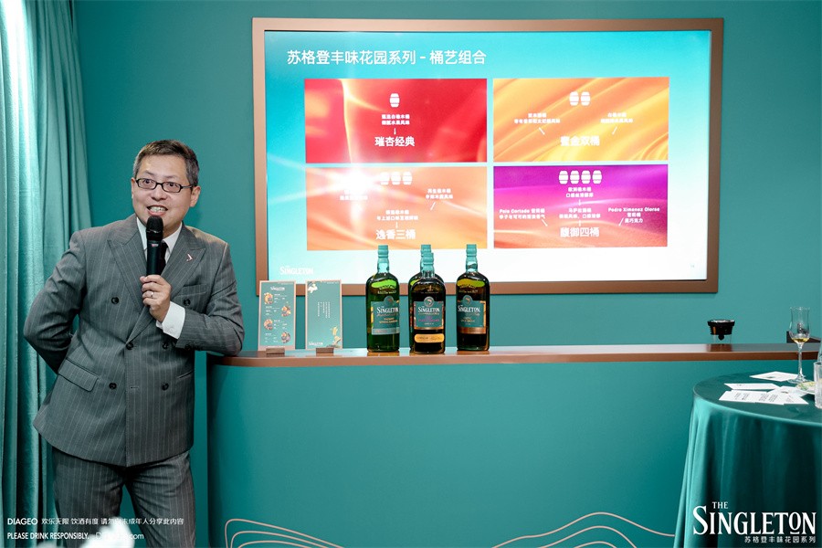 在发布会上,帝亚吉欧高级品牌大使Benson Wang与嘉宾们共同分享了属于这份丰馥秘境的大师班品鉴课程。由单一麦芽威士忌入门介绍,到苏格登品牌核心工艺所带来的丰盈口感享受。伴随这一套四支产品由浅入深的品鉴体验——从轻盈的青草香调逐步演变为成熟果园、甜美香料,直到浓郁森林的木香,带领嘉宾生动体会到不同橡木桶陈年带来的风味区别。“四款酒的风味特色及复杂度各不相同,但共同点则是全都个性鲜明且易饮好喝”获得现场多位威士忌圈内老饕好评。