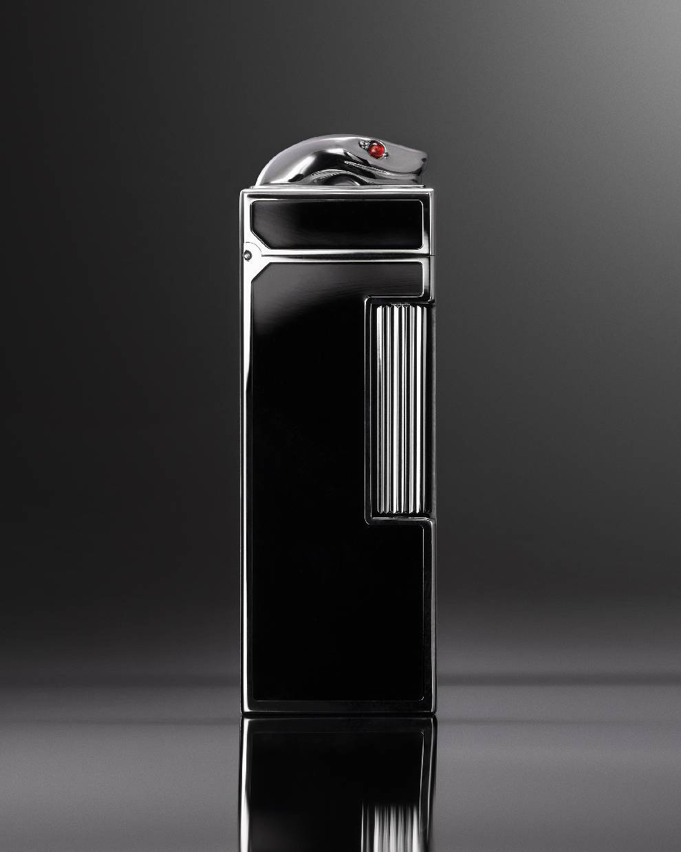 新春限量系列推出:黑色漆面款Rollagas打火机,镀钯与石榴石蛇眼撞色设计,匠心巧运,华贵宝石与半宝石搭配相得益彰,抬升整体质感,熠熠生辉,喜气洋洋。
