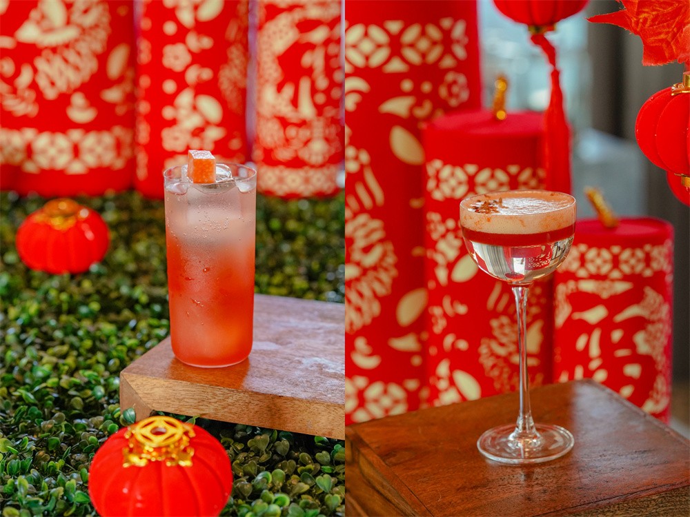 5.时令特色饮品与火锅佳肴:常驻调酒师为宾客精心调制了多款以红色、金色和橙色等吉祥色调呈现、象征幸运与活力的招牌鸡尾酒,包括“月色正浓Lunar Bloom”(由自制粉红金酒与洛神花茶糖浆混合调制而成)和“上海魅力Shanghai Glamour”(由黑芝麻伏特加、柠檬草与草莓糖浆精心调制而成)。所有餐厅和酒吧均提供零酒精选项。