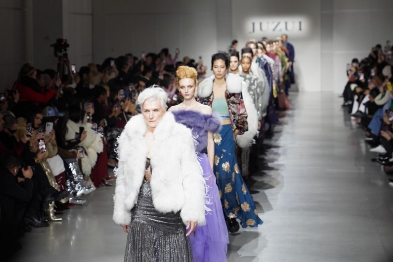左起:埃隆·马斯克的硬核妈妈、超模梅耶·马斯克压轴玖姿JUZUI⼤秀