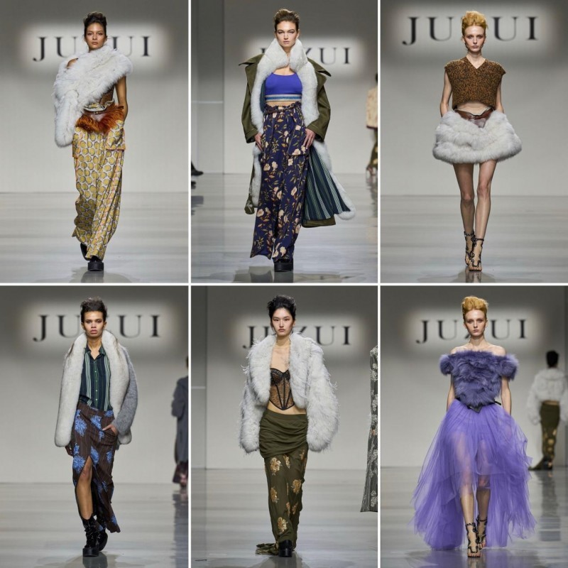 2025年1月22日,在安正时尚集团上海研发中心举行的“玖姿JUZUI2025秋冬纽约时装周行前通气会”上,玖姿JUZUI创意总监王陶Taoray Wang使用Furmark®天然皮草设计的一系列奢华服饰首次亮相。
