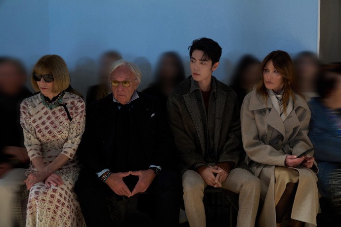全球品牌代言人肖战出席大秀,身穿TOD’S 2025秋冬系列灰色Pashmy皮风衣,内搭灰色暗格纹衬衫夹克与棕黄针织衫,深浅交织的冷暖色碰撞出温润层次,巧妙呼应的格纹元素恰如其分地点缀复古气质,搭配经典的T Timeless系列腰带、包袋与皮革乐福鞋,随性游走于皮革的奢华质感与意式松弛之间,秋冬都市的摩登气息在新季造型中悄然漫溢。