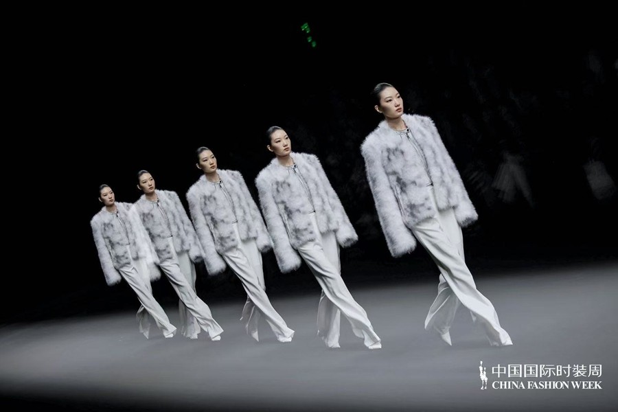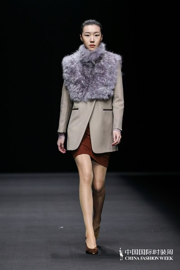 胡莹莹展现出非凡的创新能力:融合中国美学与非遗传统手法,将东方建筑线条融入服装廓形,非遗技艺为皮革皮草增添深厚文化底蕴;运用纯手工扎染与擦色技巧,给皮草染上自然梦幻色彩,赋予传统技艺新活力,展现别样时尚魅力。