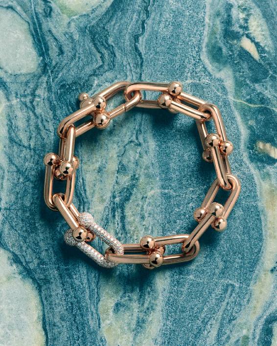左:Tiffany HardWear系列18K玫瑰金镶钻链环手链