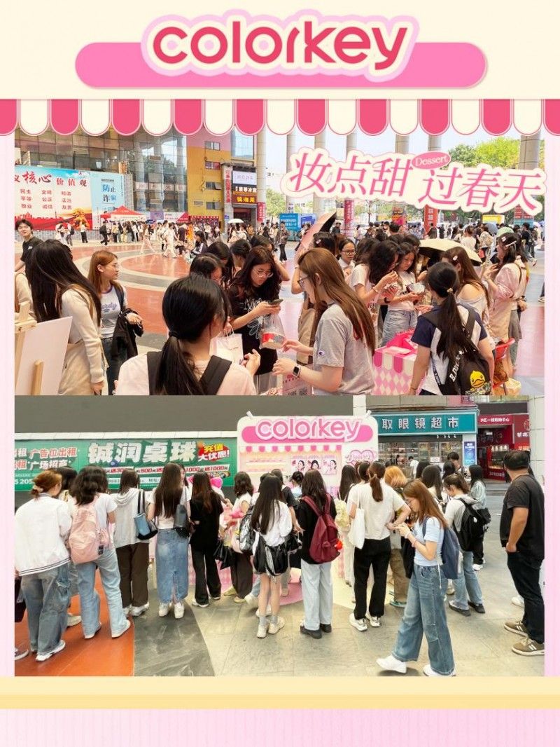 无论是校园美妆博主还是元气学生,都能在这里找到专属乐趣。现场吸引数千人参与小红书互动,总活动线上话题曝光320万+。“来Colorkey珂拉琪「甜品乐园」打卡”充盈了学生们的闲暇时光。珂拉琪以年轻化的品牌基因,与学生们零距离接触,用色彩与创意精准触达年轻客群、点燃校园激情,打造了一场难忘的“甜品乐园”快闪活动。