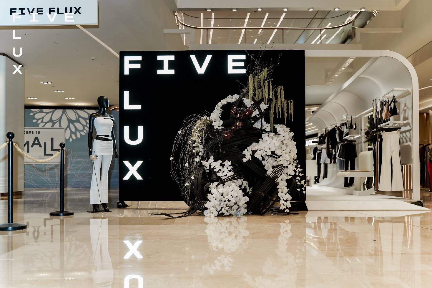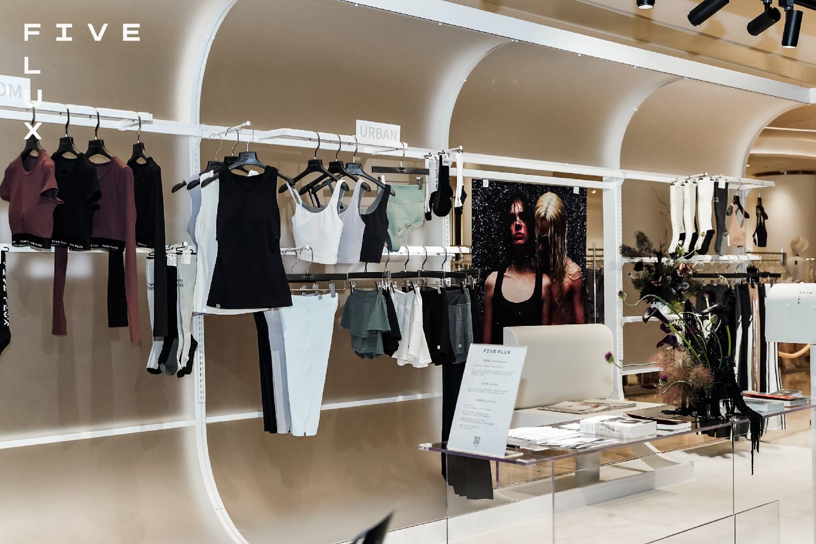 “Station”概念店的灵感源自“车站”,这一象征城市节奏的场所。在此,FIVE FLUX为女性打造了一个既私密又开放的空间,让每一位顾客在流动与停留之间找到属于自己的节奏。黑与白的碰撞象征着昼夜交替,打破时间与场景的界限,FIVE FLUX 所倡导的自由:在运动与日常之间探索更多可能。此外,线下体验空间每月发布全新主题,旨在唤醒女性内在力量及共鸣,为客户持续带来新的惊喜与发现。FIVE FLUX致力通过创新设计,将女性的力量与柔情巧妙编织在每一件作品中,让其在快节奏的都市生活中,找到自我表达方式。更多成衣系列,将逐步于线下空间发售。