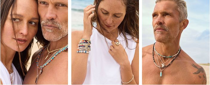 Modern Talismans 系列溯源往昔海岸冲浪生活方式,以复古配色营造浓厚度假气息。系列包含多种吊坠与饰品,融合亮彩宝石与斑斓珐琅,塑造灵动搭配体验。每件珠宝镌刻源于巴厘岛文化的图腾符号,提供精选套组,亦可根据个人喜好自由选择,承载佩戴者专属的情感投射与风格流露。本季Heishi 系列以明媚色调焕新呈现,彩色珐琅于银色串珠上跳跃排布,描绘出富有韵律感的视觉节奏。多层次元素过渡自然,展现和谐却富有变化的组合秩序,诠释随性的叠戴理念。全系列采用 100% 再生银材质,融合未经处理的天然色调与肌理,每一件作品皆散发独特质感与工艺温度,于日常佩戴中展现个性与锋芒。Carved Chain系列聚焦品牌标志廓形,拓展适配日常的基础单品。全新吊坠项链与印章戒指可轻松融入现有产品线,丰富叠搭方式。延续对天然材质的偏爱,夏季系列Carved Chain甄选绿松石、孔雀石与矽孔雀石等宝石,构建辨识度极高的绚丽色盘。在承袭匠心工艺的基础上,平衡简约轮廓与天然元素之美。