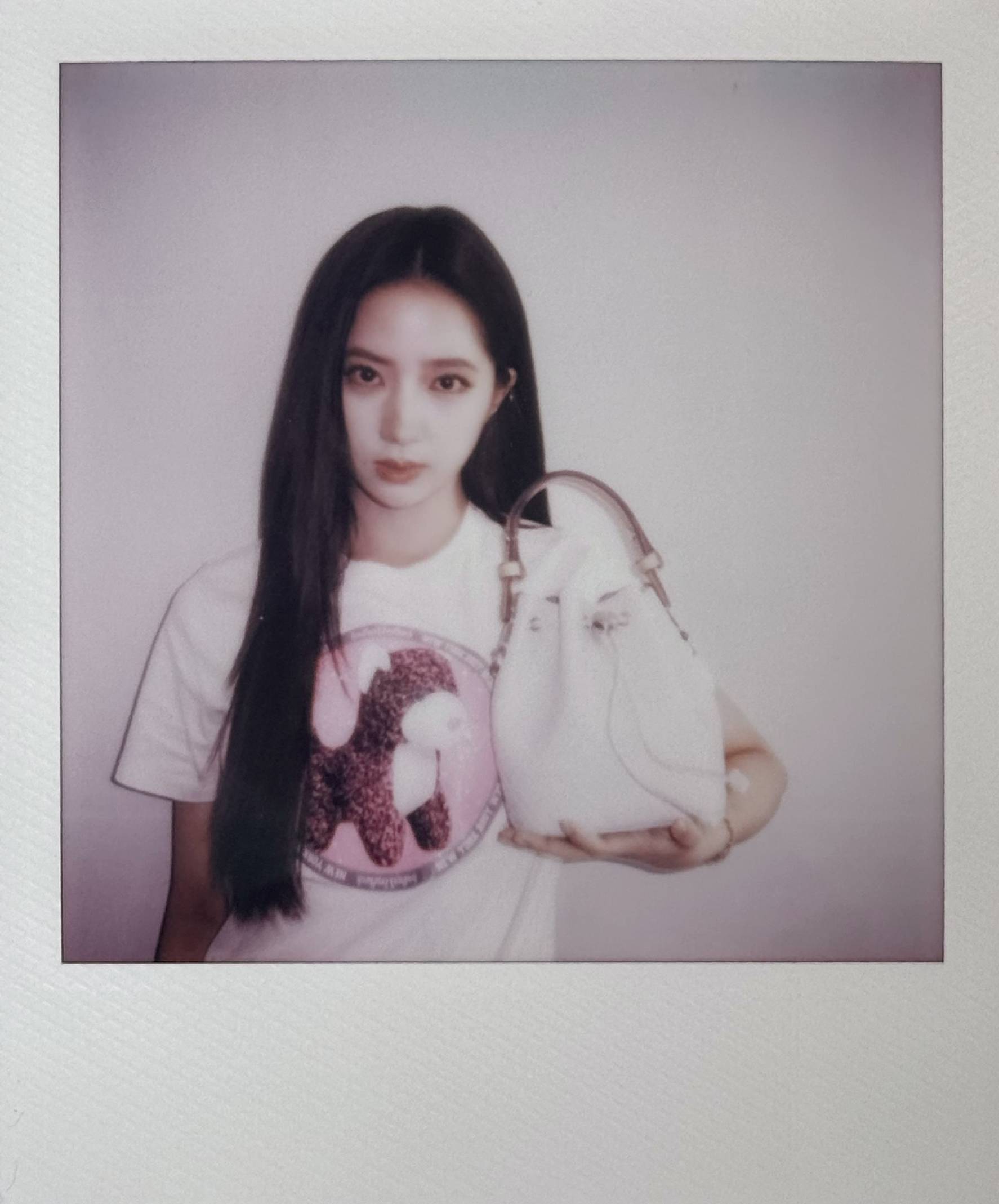 欧阳娣娣身着棉质印花T恤,携T MONOGRAM软皮迷你水桶包;