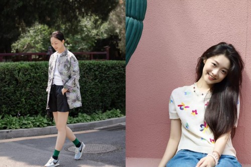 张瑶的棕榈树印花夹克注入假日气息,李雨真的刺绣针织上衣流淌温柔故事感。杨肸子两套绿色系穿搭——墨绿飞行夹克的硬朗精致与针织衫配半裙的清新气息,展现意式美学中慵懒与精致的多面性。
