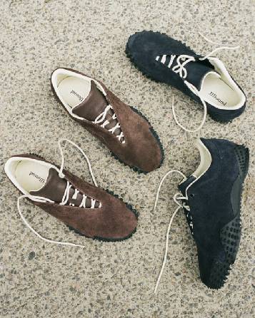 全新PUMA × JJJJound联名 Mostro鞋款以低调考究的设计语言呈现黑巧克力与深藏青两款配色,采用优质磨面牛皮鞋面,并搭配柔软皮革内衬和黑色钉状鞋底。与1999年版Mostro设计不同,该联名鞋款以传统系带设计取代魔术贴搭扣,与奶油黄内衬形成视觉呼应。细节方面,鞋侧以极简缝线工艺呈现PUMA标志性跑道元素,而JJJJound品牌标识则压印于鞋垫,彰显联名身份。