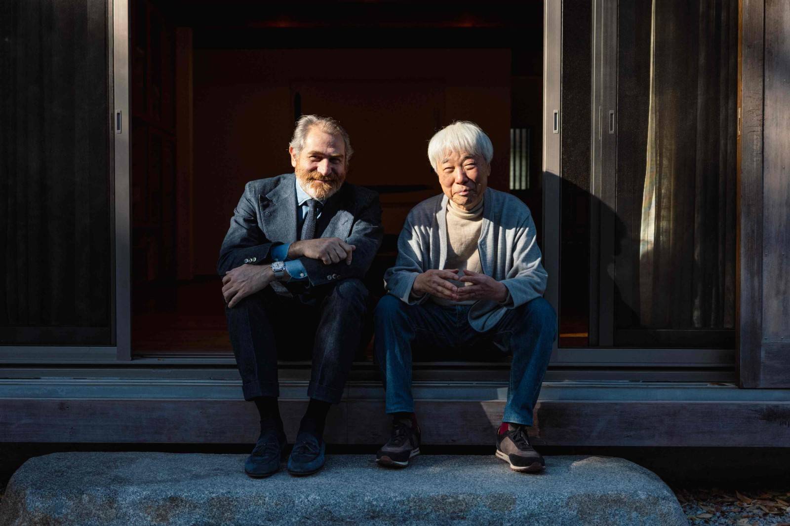 韩国艺术家李禹焕与宝格丽腕表产品研发执行总监法布里齐奥·布纳马萨·斯蒂格里安尼合影