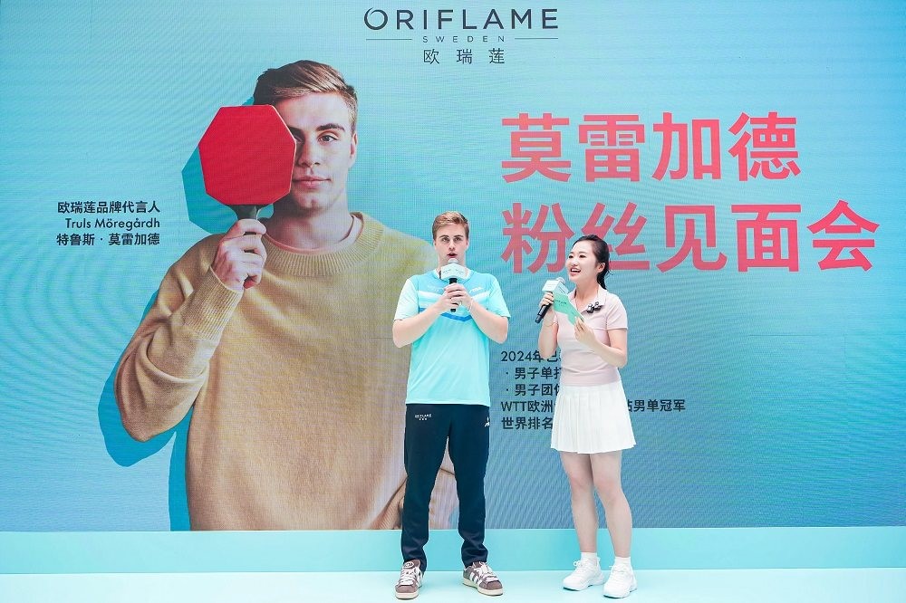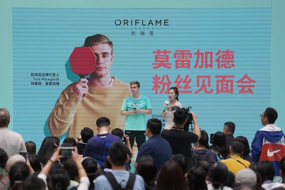 9月25日,2025 WTT中国大满贯(北京站)比赛前夕,瑞典知名品牌欧瑞莲(Oriflame)为品牌代言人、乒乓球运动员特鲁斯·莫雷加德(Truls Möregårdh)在北京举办了一场热闹非凡、活力十足,又充满感动与惊喜的粉丝见面会。活动现场不仅有多个展区陈列,更贴心安排了趣味互动等环节,为莫雷加德加油助威的同时,也再一次拉近了他与中国球迷和粉丝间的距离。