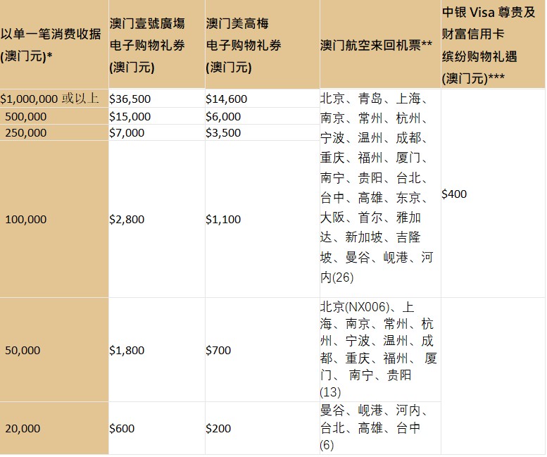 ***中银Visa尊贵及财富信用卡缤纷购物礼遇仅适用于澳门壹号广场商户