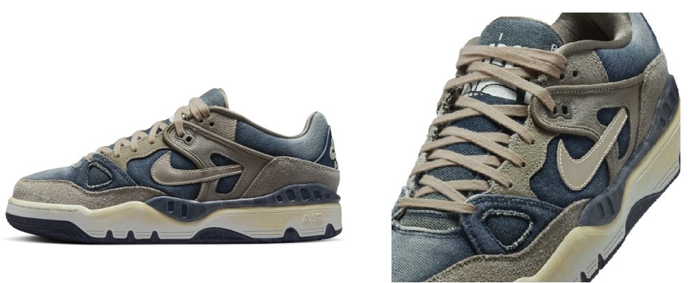 鞋款以橄榄灰(Olive Gray) 配色呈现,高品质工艺打造,凸显Levi's® 与NIGO标志性的复古做旧美学,完美契合双方一贯的设计内核。鞋面采用做旧牛仔布与翻毛皮拼接打造,两种材质碰撞交织出丰富的视觉层次。细节设计上,右脚鞋侧缀有经典Levi's® 旗标,金属质感swoosh标识随步伐折射光影;EVA 中底经特别氧化处理呈现自然泛黄,刻画岁月痕迹;橡胶外底则延续 Nike 一贯的耐用与性能。每一处细节,皆是三方基因的共生表达。