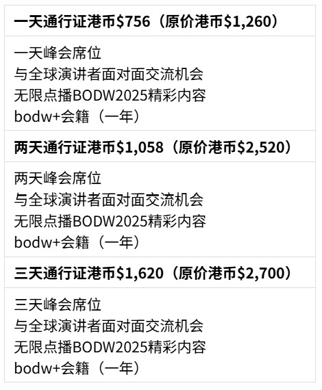 设计营商周2025套票现已接受订购,把握机会在推广期内订票,可享有以下限时优惠: