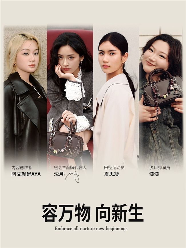 四位不同领域的优秀女性以不同姿态,诠释着「容万物 向新生」的成长力量,这恰是纽芝兰品牌一贯坚持的价值主张。无论是牛皮随使用愈发温润的质感,织物面料赋予的呼吸感,还是托特包内在的有序分区,都体现出品牌对女性真实需求的洞察与尊重。从实用功能到情感共鸣,纽芝兰致力于为女性提供踏实而自由的支持。