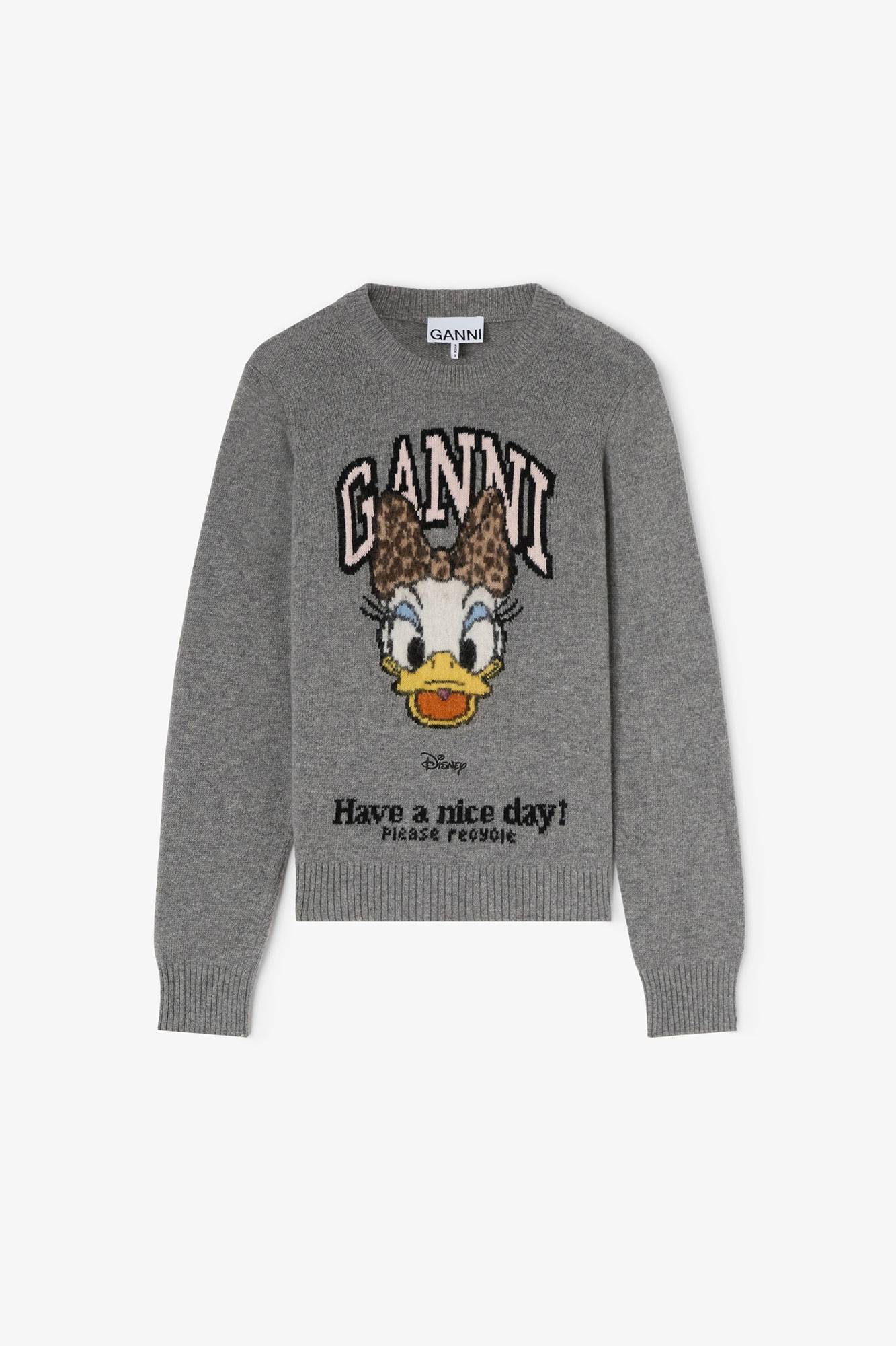 本次联名以GANNI最具辨识度的设计语言重新演绎黛丝的标志风格——从经典豹纹印花、扣饰芭蕾鞋到西部靴——将其独特魅力注入成衣与配饰系列。系列主打单品涵盖针织、毛衫及包括帆布托特包与BOU BAG在内的配饰单品。这些作品以醒目的印花图案趣味呈现,生动演绎黛西的动画魅力。