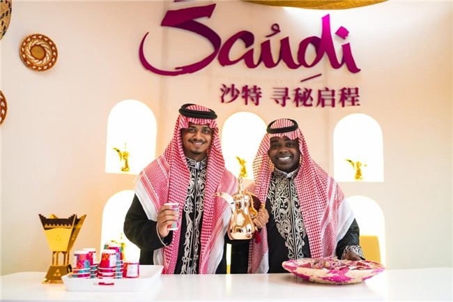 而在利雅得展台,游客可将中文名字译为阿拉伯语,由工作人员现场书写成阿拉伯书法的艺术明信片,成为一份独一无二的纪念;现场更设有“阿拉伯服饰拍照亭”,游客可以试穿经典沙特长袍,由现场工作人员贴心协助穿戴,帮你定格成为“一日沙特人”的难忘瞬间。