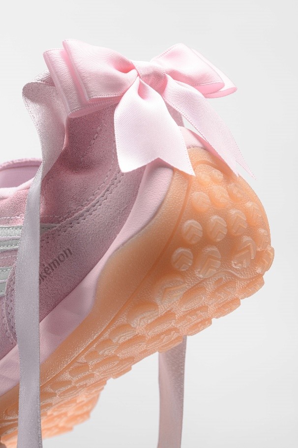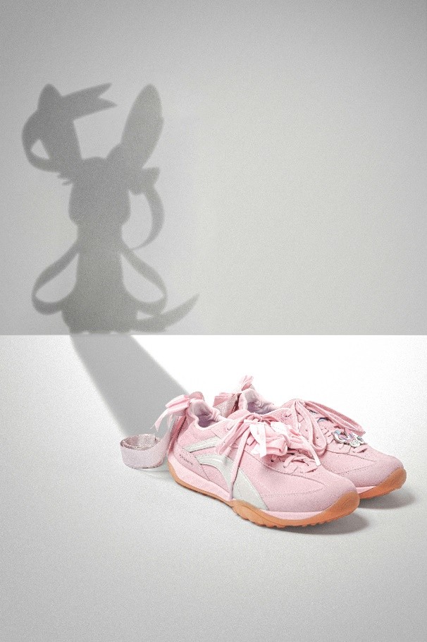 女子老爹鞋款选取轻便舒适的猫爪LITE 3、曲奇与蜜糖3三款,分别与“胖丁”、“皮皮”、“伊布”三个角色融合,呈现时尚甜美风格。鞋款设计皆呼应其对应角色形象色彩,并在鞋舌以闪卡点缀,在走动时呈现角色形象与剪影动态效果,不同光线角度下呈现出灵动光泽。各鞋款结合角色特点制作配饰,猫爪LITE 3融入“胖丁”灵动可爱特点,饰以圆滚滚胖丁的挂件与音符挂件,走动时挂件的碰撞发出美妙的声响,寓意“抚平压力,带来宁静”;曲奇面包老爹鞋型呼应“皮皮”圆润与粉色的形象特点,随鞋所配球球鞋带亦呼应其角色圆滚滚造型,并以可爱耳朵造型点缀鞋后跟;蜜糖3 以“伊布”标志性的棕色系为主调,鞋侧剪影暗纹、后跟处精致伊布头像、可拆卸鞋带饰扣,满足个性化穿搭需求的同时,鞋款更加灵巧动人。