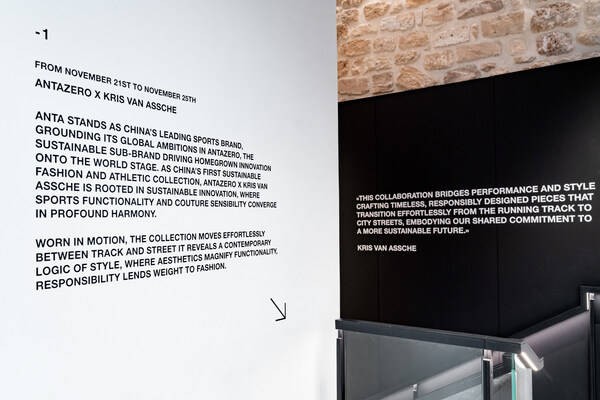 2025年11月21日,安踏与国际顶级时装设计师Kris Van Assche 的共创系列——ANTAZERO X KRIS VAN ASSCHE正式上市,并于全球顶尖先锋买手店 Dover Street Market(DSM)巴黎旗舰店率先举办发售活动。该系列以可持续创新为底色,深度融合高级时装美学与安踏运动基因,此次发售标志着安踏品牌以可持续之姿进入全球时尚语境。