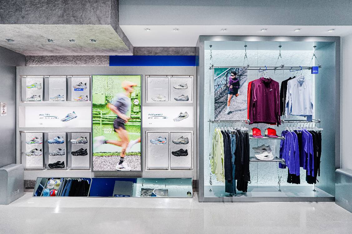 延续品牌一贯的专业主义基因,店内陈列围绕不同跑步需求清晰划分,覆盖日常训练、竞速比赛及越野等场景,并同步呈现完整的跑步服饰、运动内衣与配饰系列,为城市跑者提供系统、高效的一站式装备体验。在高度概念化的空间之中,BROOKS始终坚持以真实跑步需求为核心,让设计服务于跑者本身。