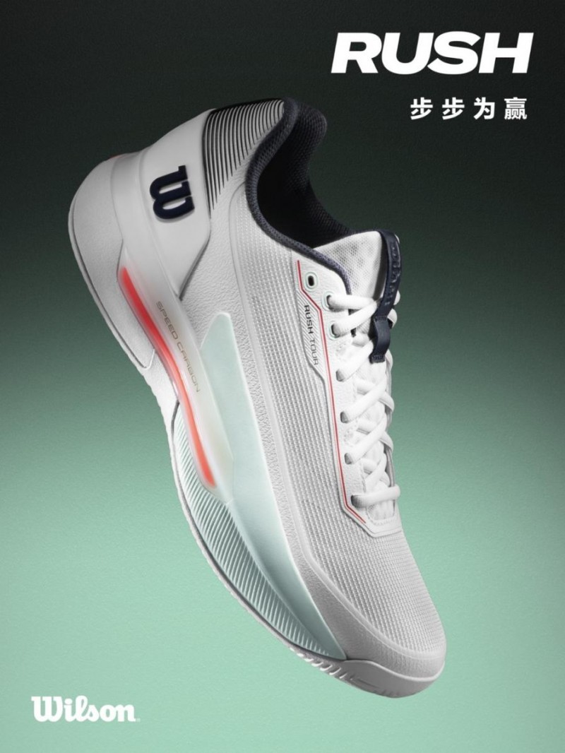 引言:2026年,全球领先的网球运动品牌Wilson威尔胜正式发布Rush系列专业网球鞋的革命性升级之作——全新Rush 5 Tour,首次使用PEBA和SPEED CARBON FORTYFIVE碳编织纤维板作为中底配置,配合升级的鞋面科技,带来动力十足的球场体验,成为亚历克斯·德米纳尔( Alex de Minaur)、卡伦·卡恰诺夫(Karen Khachanov)、伊日·莱赫卡(Jiří Lehečka)等众多Wilson签约360运动员的赛场选择。