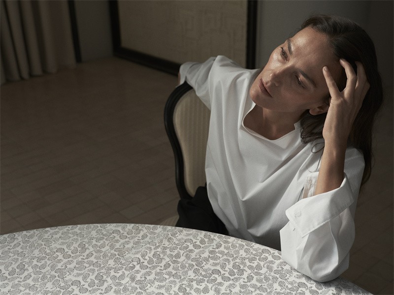 风衣流畅而放松的线条自上而下徐徐展开,不刻意强调曲线,却以精巧的余量容纳不同身形,如同给身体预留的一方私密领地,让每一次举手投足都自带从容的韵律。面料选用羊毛面料中的全毛硬挺精纺平纹呢,不同于传统风衣材料,保持舒适、精致的同时,利用硬挺的材质更好展现设计廓形。