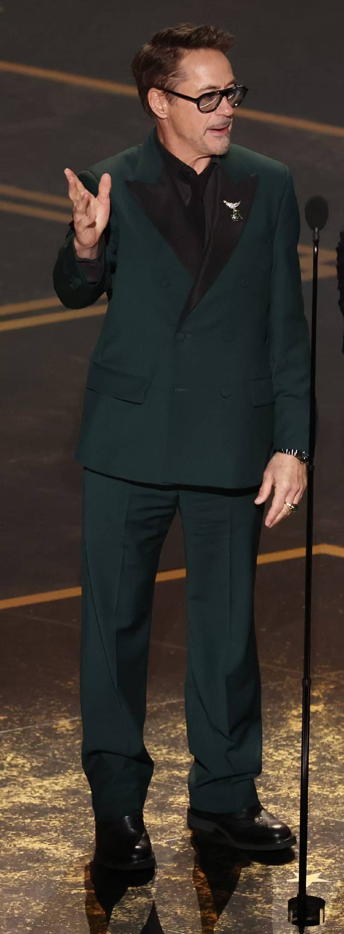 演员Robert Downey Jr.身着华伦天奴创意总监Alessandro Michele特别定制礼服出席第 98 届奥斯卡金像奖颁奖典礼,墨绿色西服展现出成熟风范。