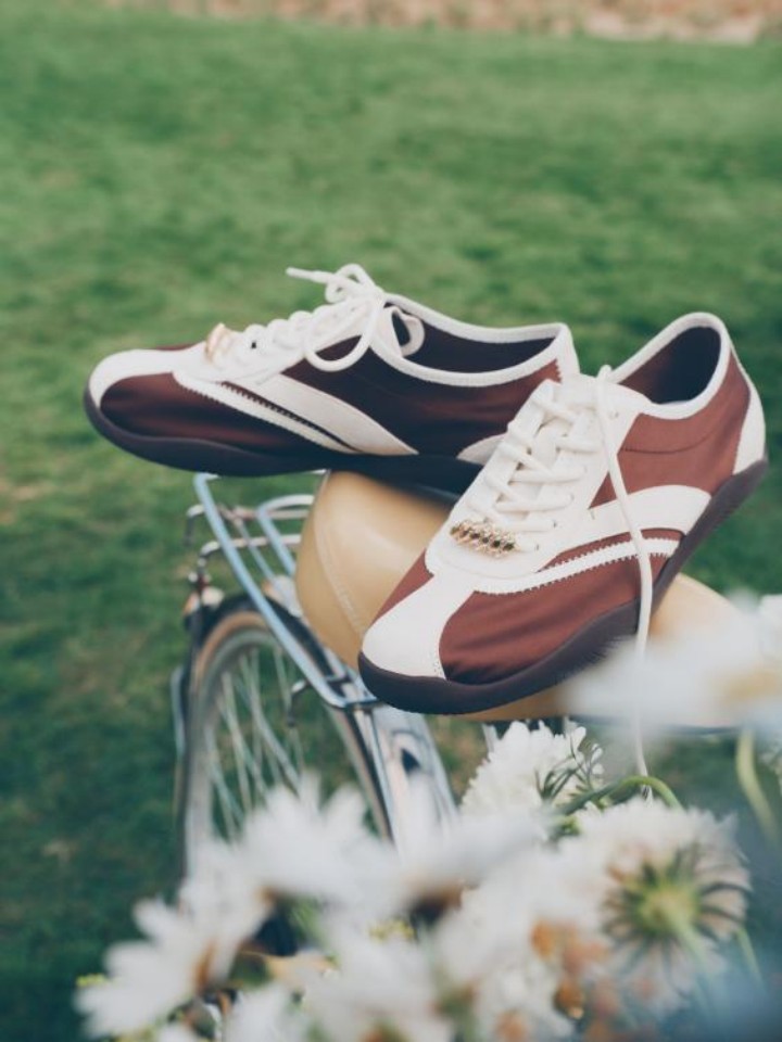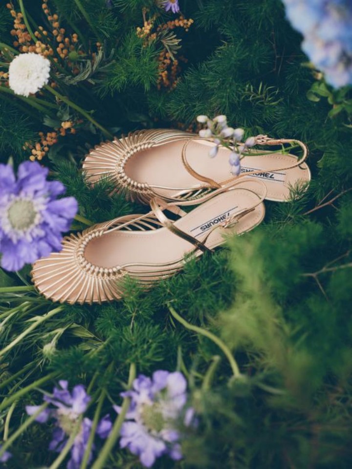 为春日量身定制的浪漫鞋履,像自由生长的藤蔓般的细带鞋面,将重工匠心工艺与惬意假日风融合。一双鞋共80个飞机位,均需经过多轮调试精准定点且凹槽吻合,每根条带的长度也要准确裁切,才能让细带弧度顺滑、排列匀称,几何线条的美感展现得淋漓尽致。
